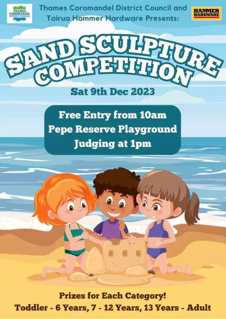 Free Entry Fun Family Event. Create a fantastic Sand Sculpture, Castle, Animal, Monster whatever your imagination wants, Judging will be at 1pm. Great Prizes for all ages, adults included.