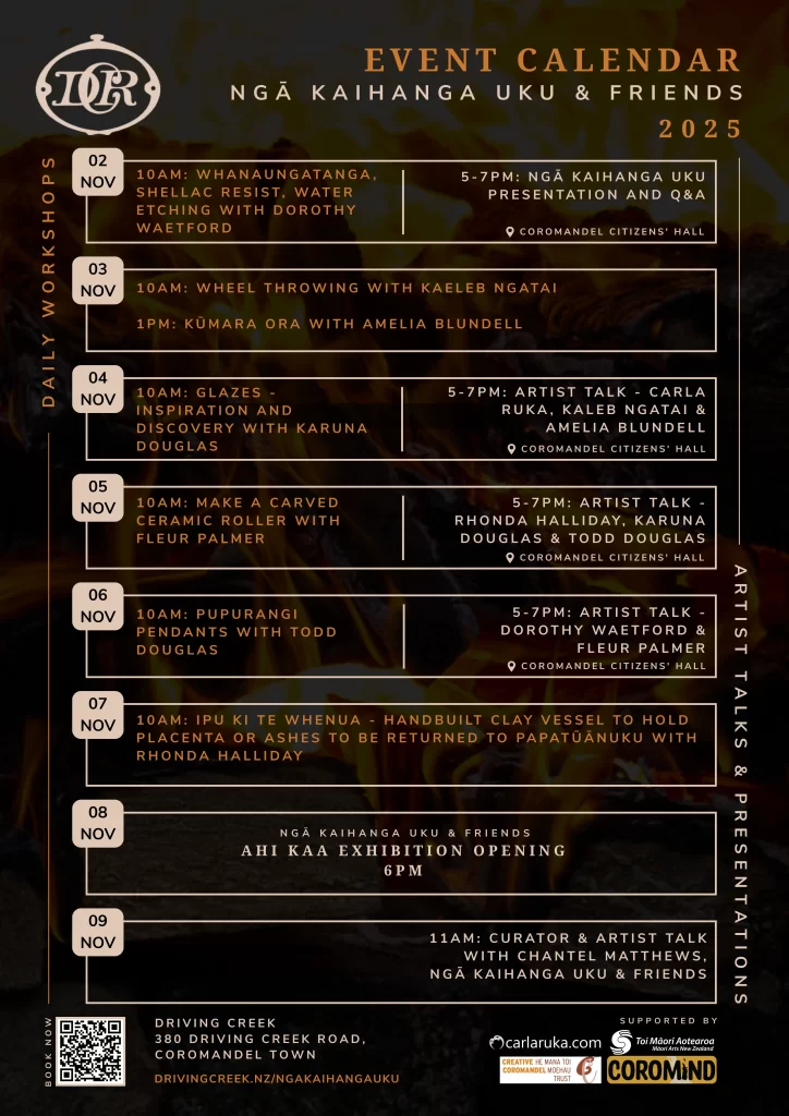 Driving Creek is thrilled to announce that Ngā Kaihanga Uku (the Māori Clay Artists Collective) and friends will be returning to Kapanga to rekindle their long-standing relationship with Driving Creek