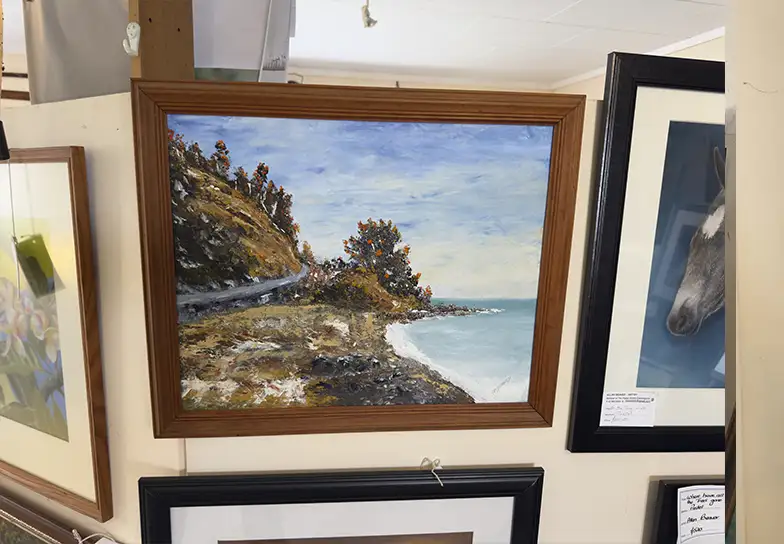 The Coromind crew visits Allan Beaver’s studio in Coromandel Town on a sunny Sunday afternoon. Allan produces landscapes in oils, portraits in pastels, and freehand pencil sketches. His wife Loes creates handcrafts, knitting and tapestry.