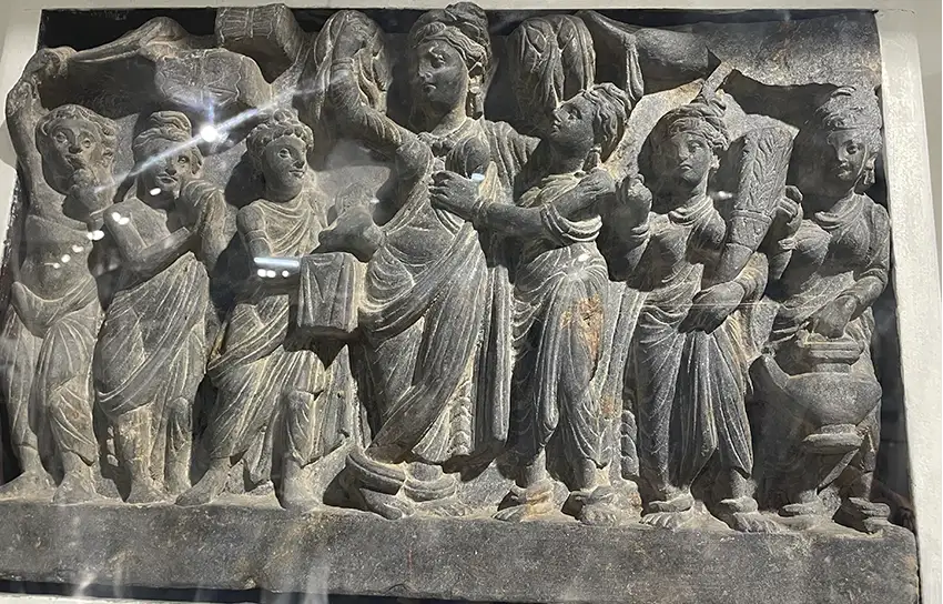 Note the craftsmanship that has gone into depicting stories of deities or Buddha himself, using ancient techniques to show depth and finesse in the workmanship of the blue stone.