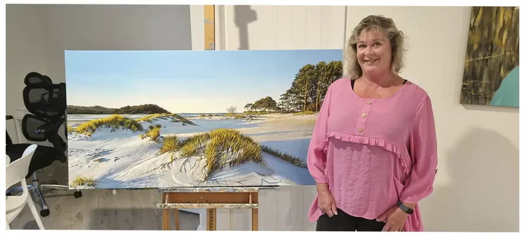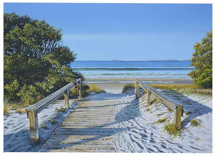 Our beautiful beaches inspire many of my paintings. To feel like you can walk into a painting, feel the sand, the light breeze and see the waves crashing in … I like to think that the painting is like looking out the window at somewhere you would love to be.