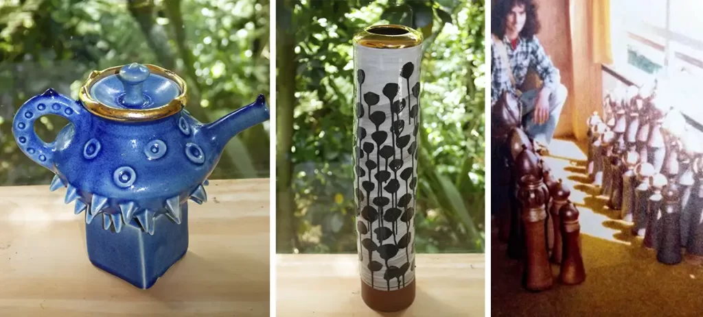 When the family business was sold, Japanese ceramicist Nami Miyoshi suggested Ashley apply to live and work at Driving Creek Railway, then operated by the legendary Barry Brickell. The move would shape his trajectory as a maker. Ashley developed a strong passion for wheel work and explored clay as a sculptural medium. While at Driving Creek, he created a large ceramic chess set that was later acquired by the Waikato Museum (then the Hamilton Museum) in 1978, where it remains in the permanent collection. He later pursued a Bachelor of Applied Arts at Whangārei Polytechnic and continued developing his practice, balancing large sculptural works with functional domestic ware.