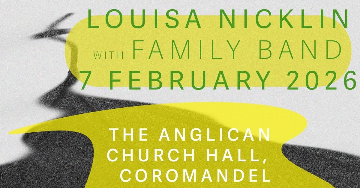 On Saturday, February 7th, Louisa Nicklin is joined by Family Band for a show with a sea view at the Anglican Church Hall in Coromandel Town.