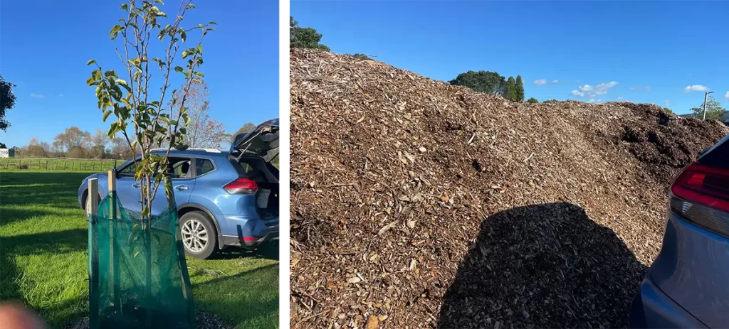 Also, the largest and oldest stand of macrocarpa and gum trees were cut down by developers while the grey heron were nesting and feeding their young – displacing the heron chicks and stressing the parents’ nest and security, so action needed to be taken – not only for our future native insects but for our children and their children – this sparked the creation of a fruit forest for future generations.