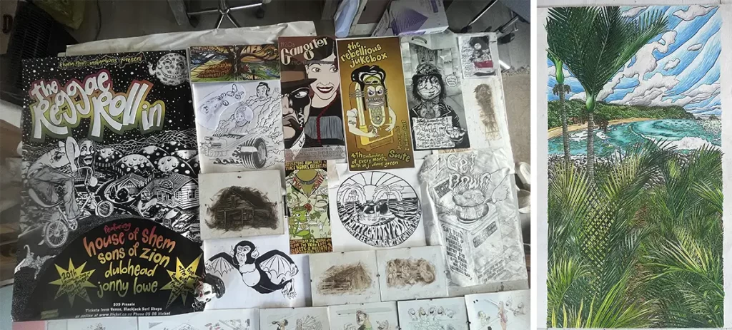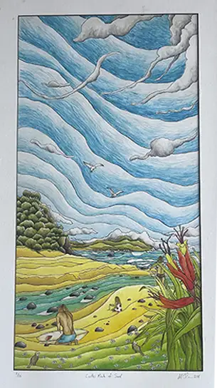 Coming back to the Coromandel was a breath of fresh air after my stint in the ’Tron, and I was determined to get off the tools and give my art career a decent crack. Life had other ideas. After a few carefree bachelor years, I had a young family and a mortgage, so I went out on my own landscaping – still illustrating and painting in the evenings.