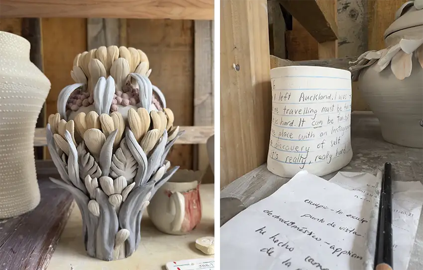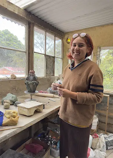 In art school, my work became more complicated as I tried to fit into ideas of what I should be making, and in the mix, I absorbed the belief that pottery, as a craft, wasn’t as valued or important as other art forms. I was still unlearning that when I first came to Driving Creek in 2022, onboarded first as a pottery tutor and then later, a train driver.