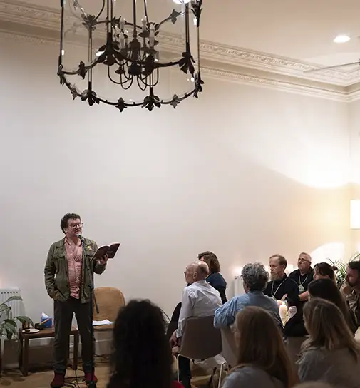 Padraig’s presence is distinct. As an acclaimed author, poet, theologian and conflict resolution facilitator, among many other things, Pádraig’s work has accompanied me for many years, and I am overwhelmed by awe. And my self-doubt. I fear the academy will regret giving me the scholarship. I fear reading my work aloud for its amateur immaturity. Pádraig immediately quashes my impostor however, by announcing “Comparison is a cancer” in his lilting Irish accent and asks us to simply be kind and honest with ourselves as we write this weekend. We should know our wonderful line may not surface, not this weekend, not this year even, but it will come, as long as we know we are seeking it.