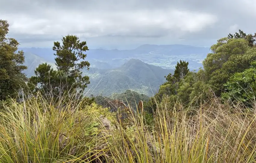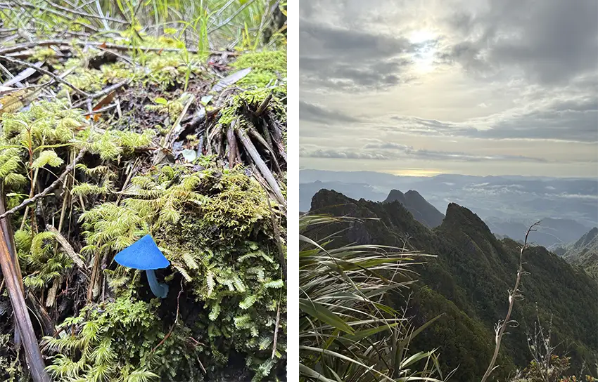 I started at Broken Hills in the Coromandel and walked up to Hihi Trig Station, taking a small detour to an old dam along the way. The views were lovely, stretching across to the cliffs where I sometimes go rock climbing. Then the mud began. At one point I sank into the track up to my waist. The downhill sections saw me scrambling down banks by clinging to tree roots.