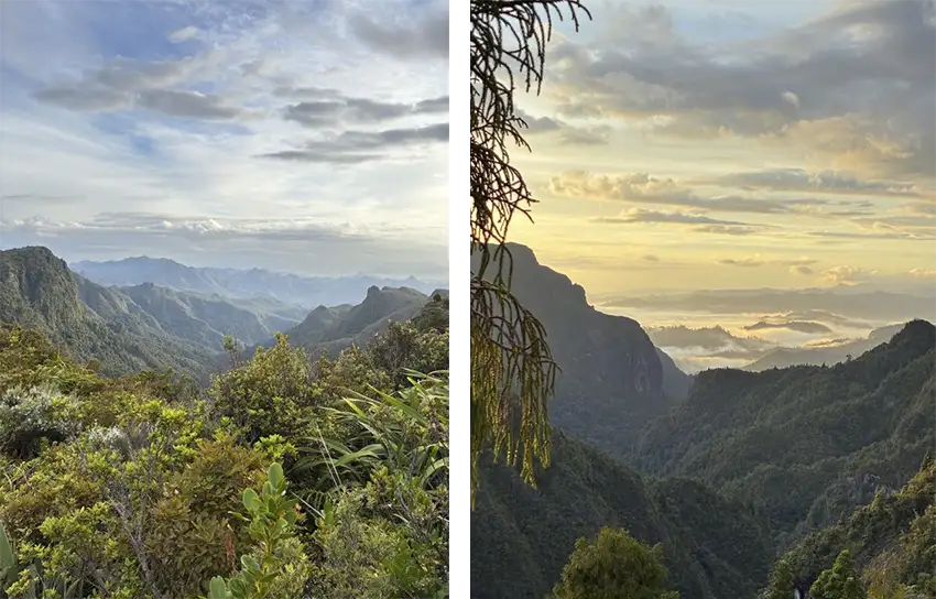 The view was spectacular. A pink glow spread through a wispy cloud over the land, and I was alone at the top. The sunrise crowds from the Pinnacles Hut had already gone. I lingered for ages, legs dangling over a quiet ledge that might otherwise have inspired a concerned citizen to tell me what not to do.