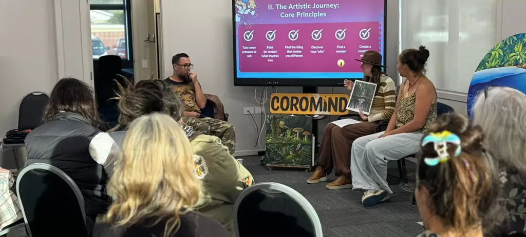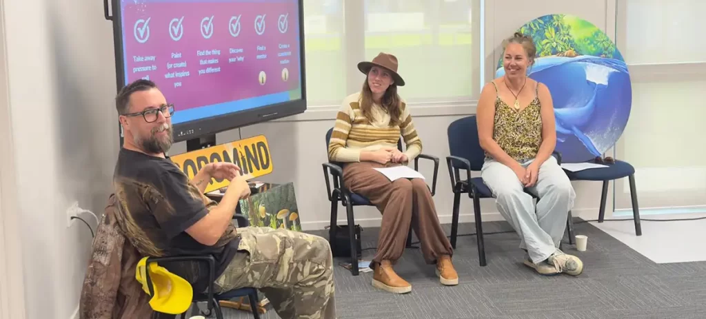 To wrap it all up, this final session is an open kōrero focused on the wellbeing of artists. How do we stay inspired while navigating the pressure to earn, promote, and keep producing? We’ll bring together reflections and questions from earlier sessions to explore how we can care for ourselves — and each other — while doing what we love.