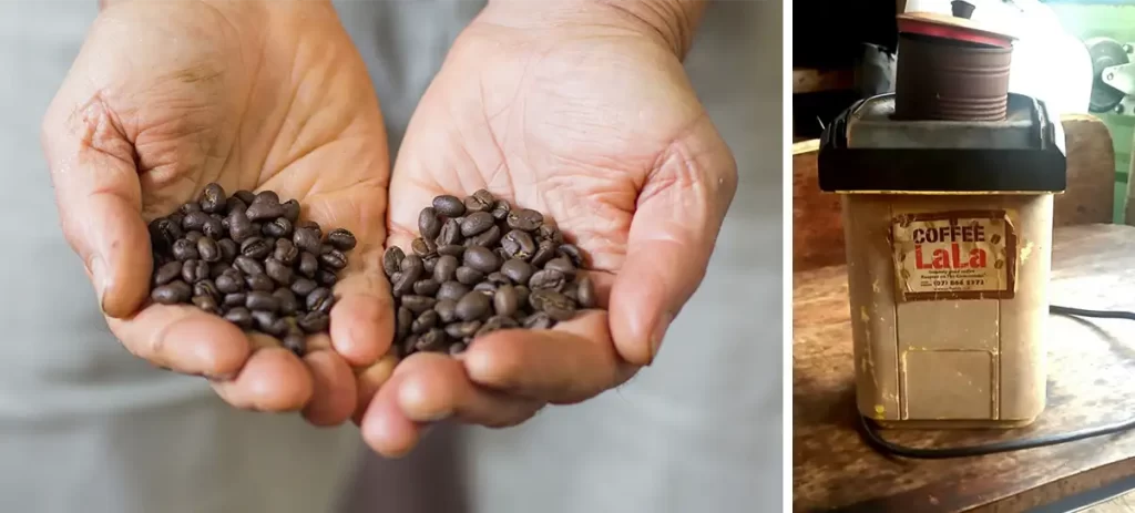 In the 11 years of NZ Coffee Expo competitions, LaLa won 18 awards, against as many as 100 companies, no cup of tea. These days, our sales are divided between home deliveries to loyal LaLa lovers, work places, café and small groceries, beach stores and local supermarkets. We roast two or three times a week and are blessed with a great staff of locals, two great roasters and three amazing office staff besides Nedilka and me – oh, and our incredible Rural Mail contractors. Without them all, there would be no LaLa.