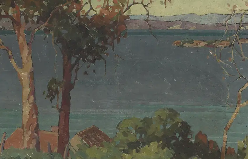 The following year the family moved to Christchurch, and from mid-1919 Rhona studied at Canterbury College School of Art, now Ilam School of Fine Arts, where she joined an illustrious group of women artists. In 1921 at the age of 20 she became a member of the New Zealand Academy of Fine Arts, and the following year exhibited with the Canterbury and Auckland art societies. Rhona was considered “one of the most spirited and promising of the Canterbury students.” (2)